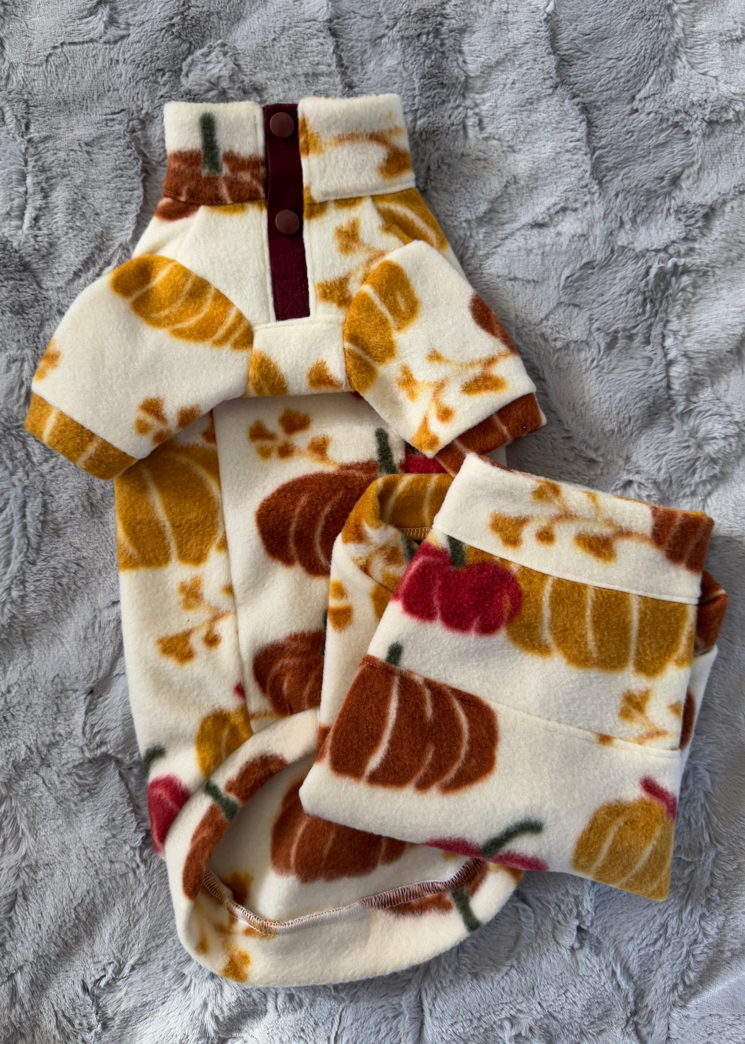 Nous ajouterons entre 2-3 cm aux mesures du cou, tronc et bedaine afin que le vêtement soit confortable.