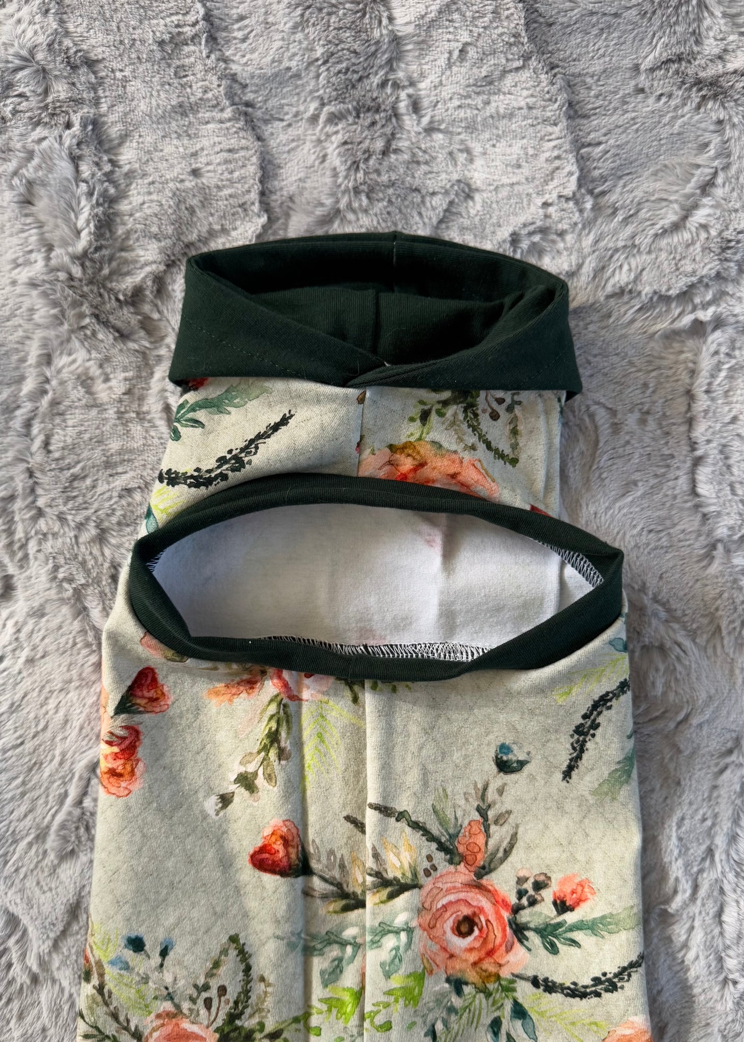 Chandail long à capuche - Fleuri effet matelassé & vert