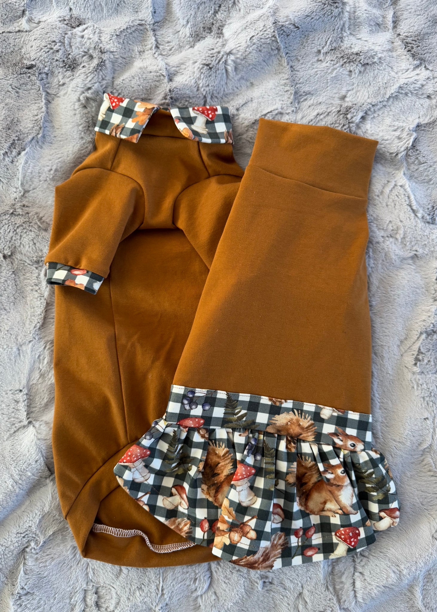 Nous ajouterons entre 2-3 cm aux mesures du cou, tronc et bedaine afin que le vêtement soit confortable.